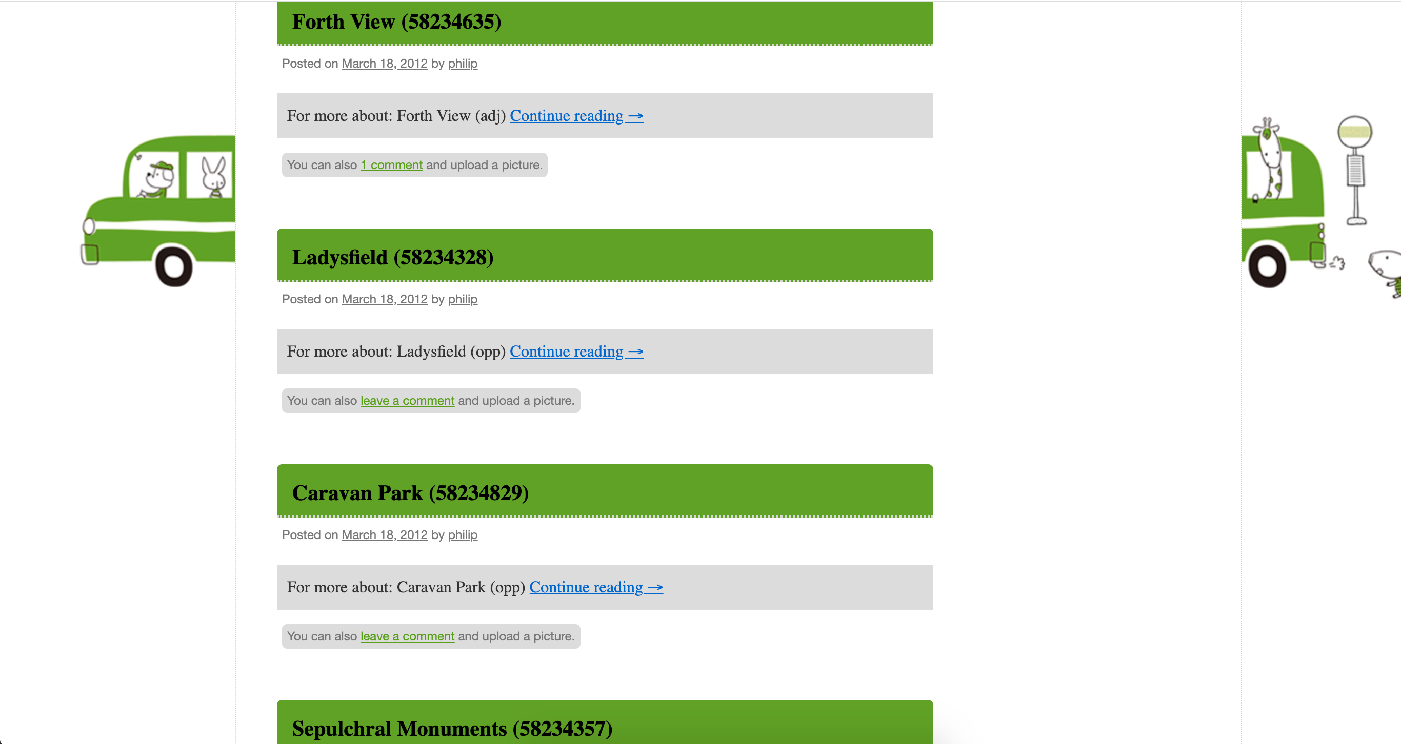 The bus stop map pages were constructed using mashups on Mappress (a much earlier version, but using their pro tools which opened up the possibility of creating simple map based queries). The data were downloaded from the bus stop database, parsed and imported using a tool called TurboCSV, from the same stable as Mappress, which made light work of an otherwise tedious import of hundreds, or was it thousands of bus stops.